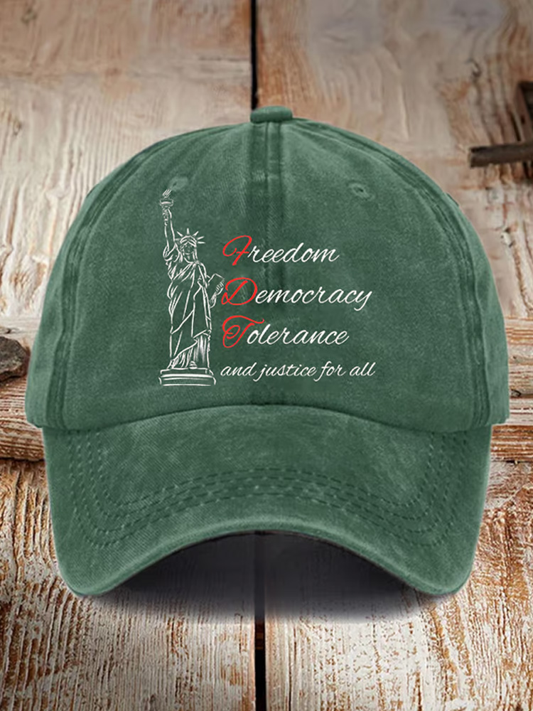 Freedom Democracy Tolerance And Justice For All Print Baseball Cap