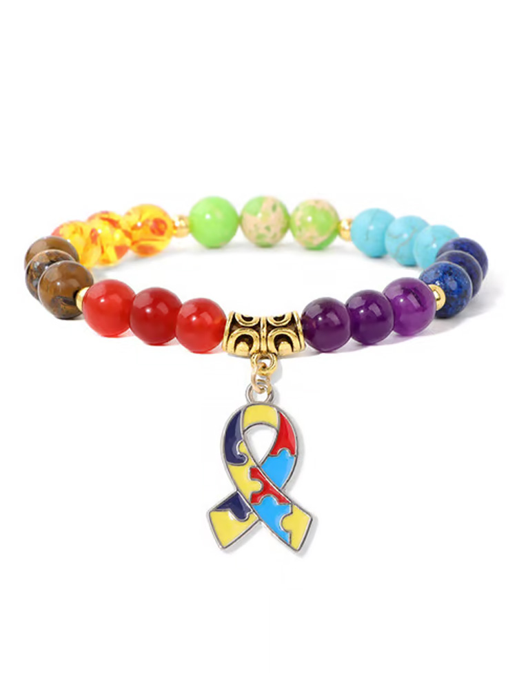 Autism Awareness Geometric Puzzle Colorful Stone Bead Bracelet