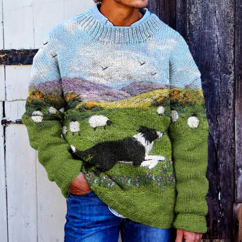 Men's Vintage Border Collie & Sheep Cozy Knit Isle Sweater
