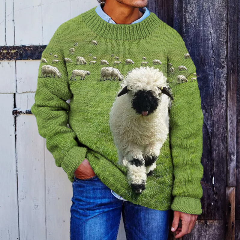 Men's Vintage Sheep Art Cozy Knit Sweater