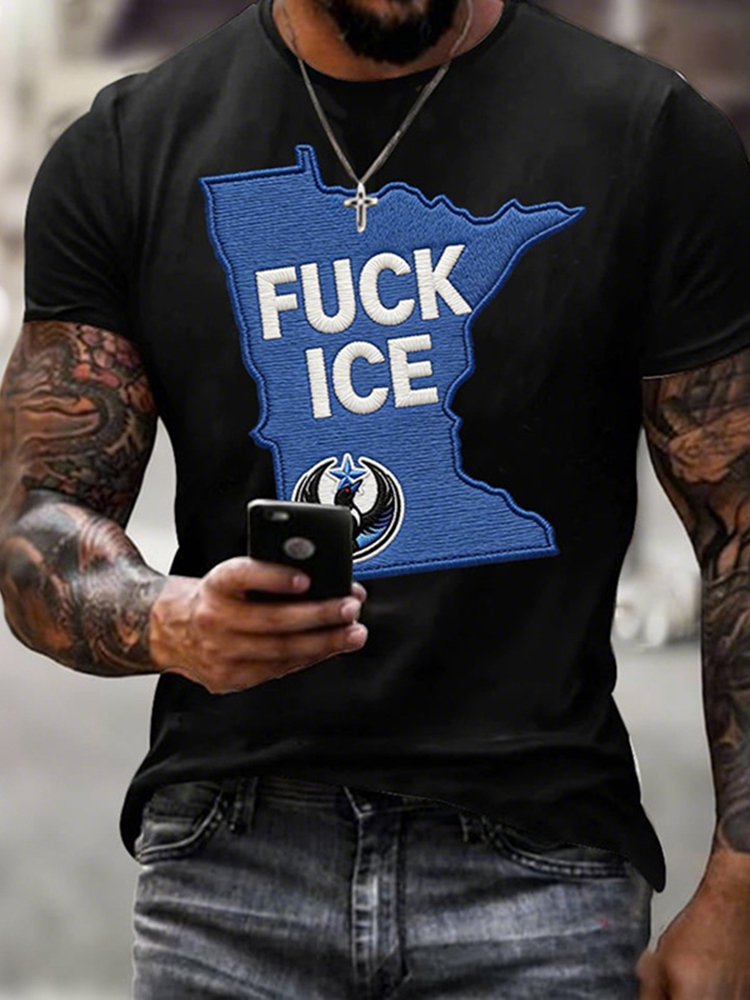 Abolish Ice Slogan Round-neck Short-sleeve T-shirt