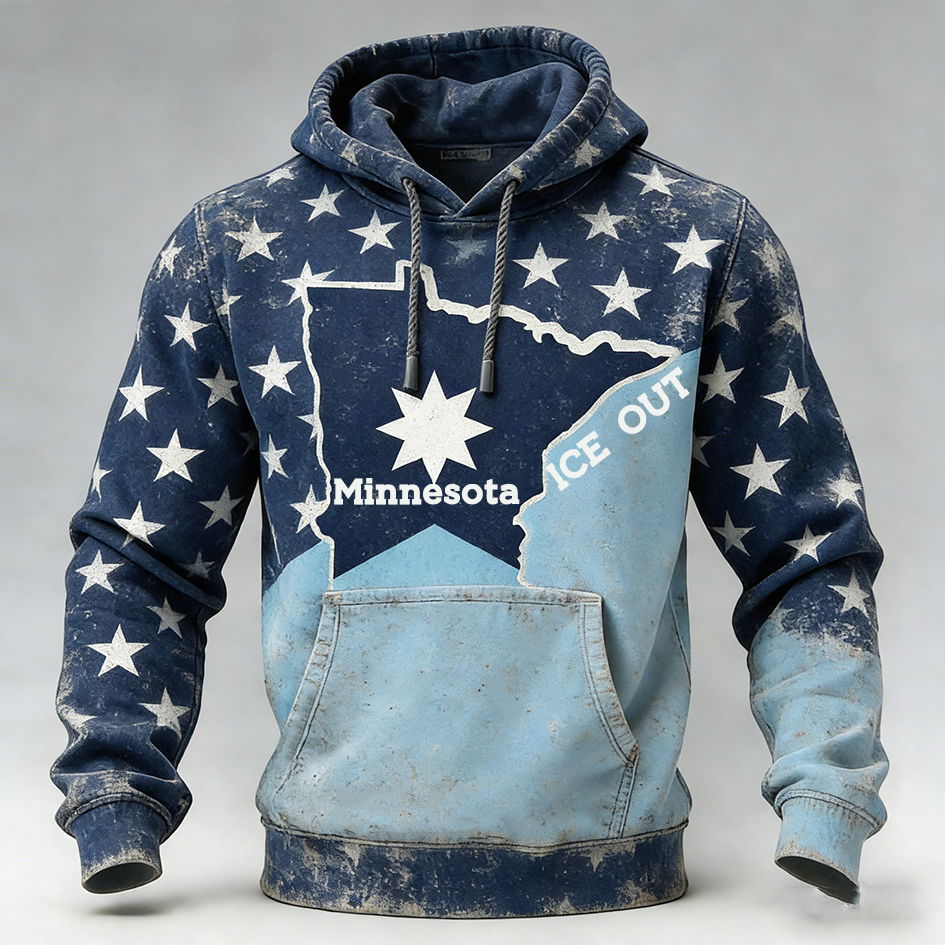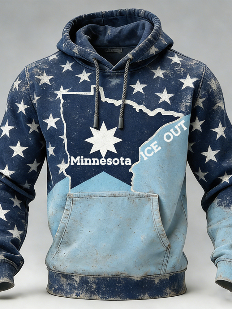 Men's Vintage Ice Out Minnesota Strong Print Hoodie