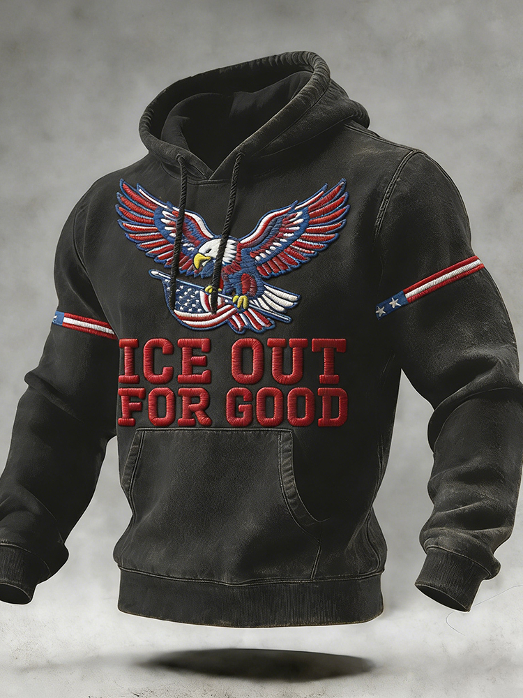 Ice Out For Good Patriotic Bald Eagle Washed Hoodie
