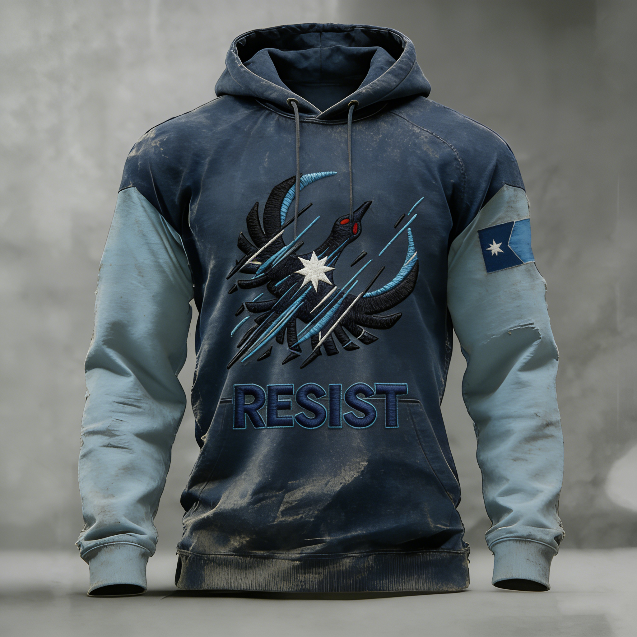 Men's Vintage With The Resistance Printed Distressed Hoodie