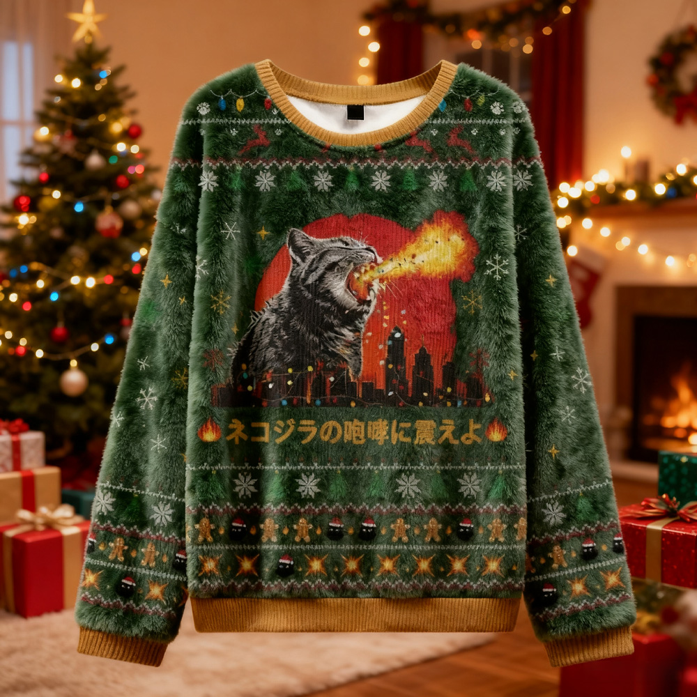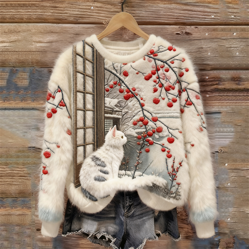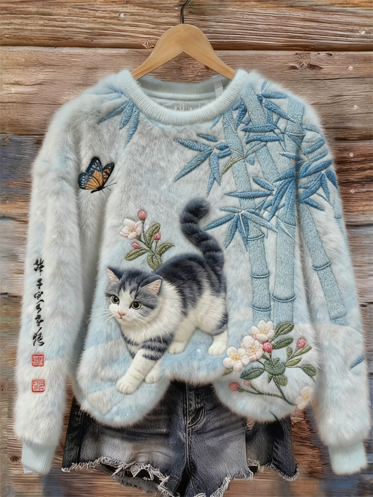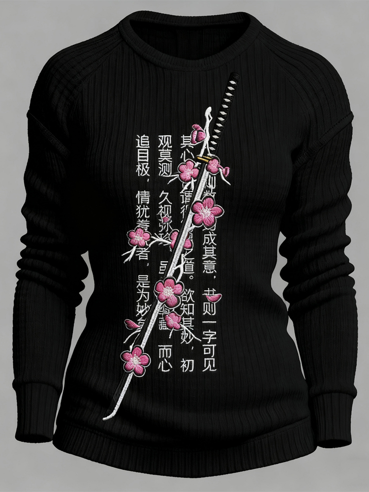 Japanese-style Divine Tortoise Embroidery Design Women's Flannel Sweater