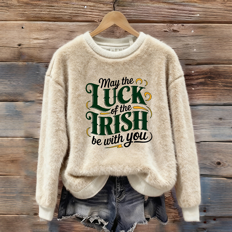 Women's May The Luck Of The Irish Be With You Slogan Cozy Plush Sweatshirt