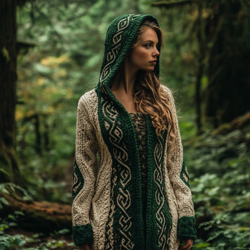 Women's Celtic Knot Gradient Color Cozy Knit Hooded Cardigan