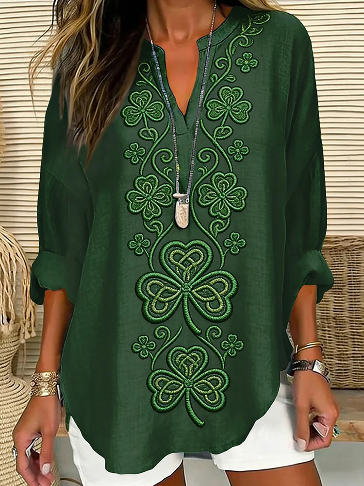 Women's Vintage St. Patrick's Day Shamrock Casual Linen Shirt
