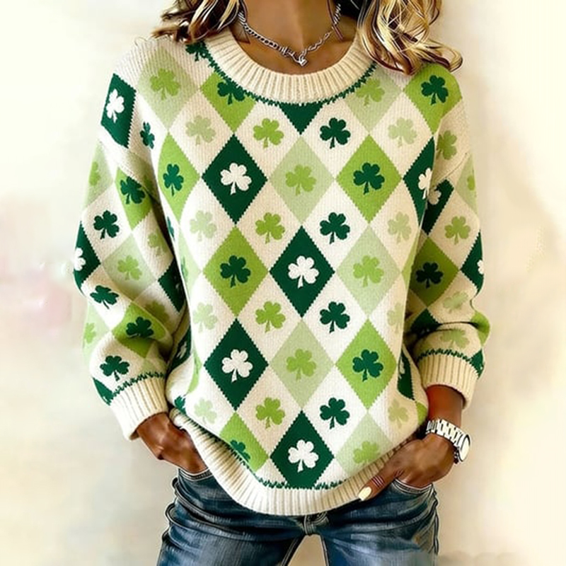 Women's St. Patrick's Day And Shamrock Pattern Comfortable Knit Sweater