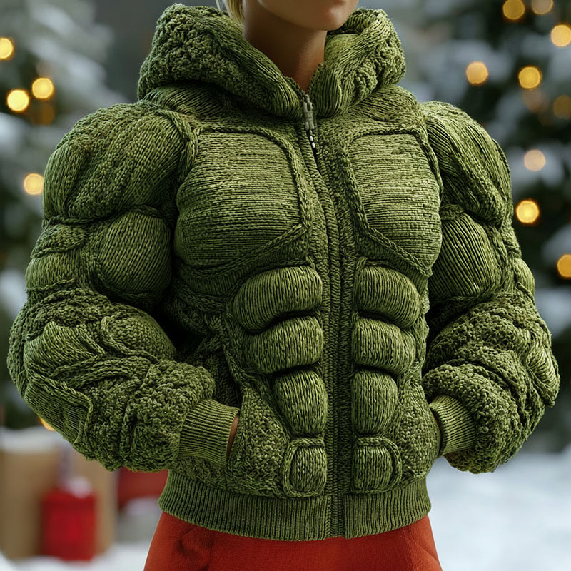 Christmas Winter Warm Women's Hooded Knit Sweater Jacket