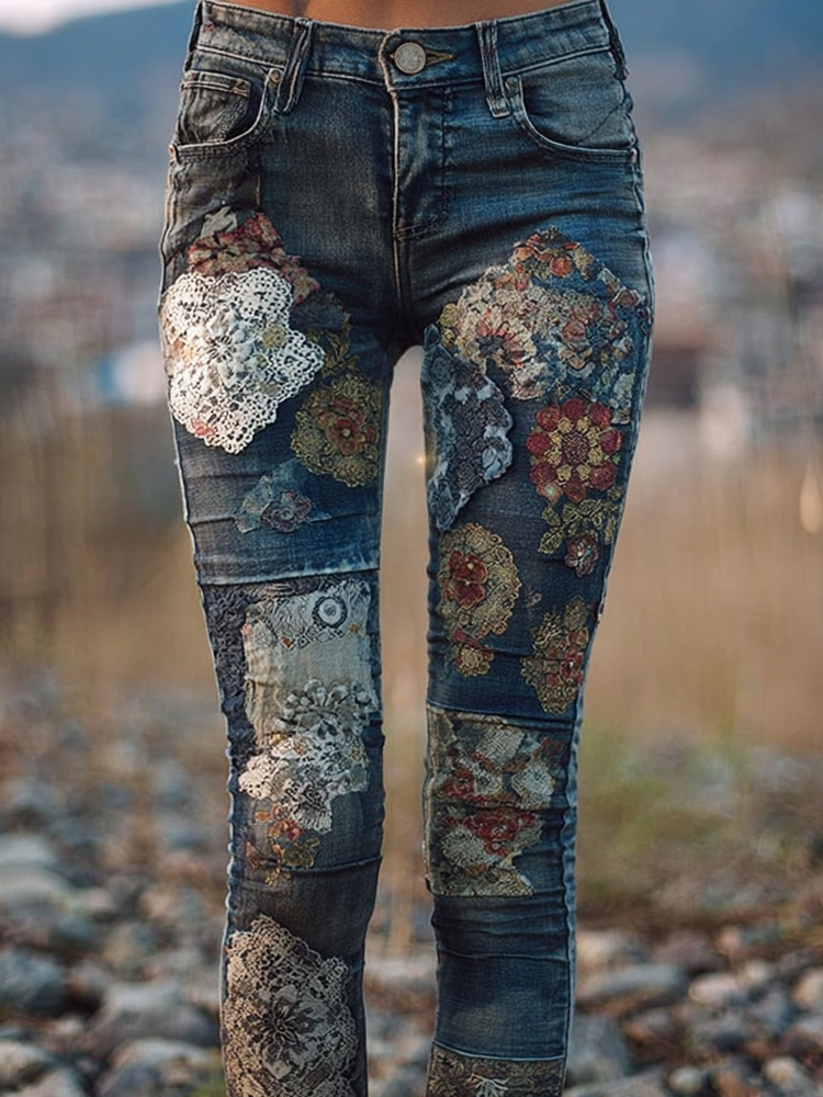 Bohemian Style Patchwork Floral Lace Vintage Jeans