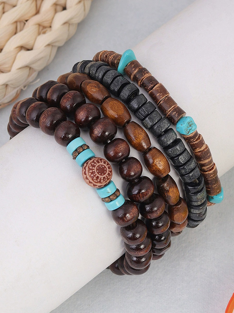 African Tribal Wooden Beads Bracelet Four Piece Set