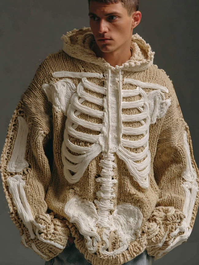 Men's Vintage Skeleton Crochet Cozy Hooded Sweater