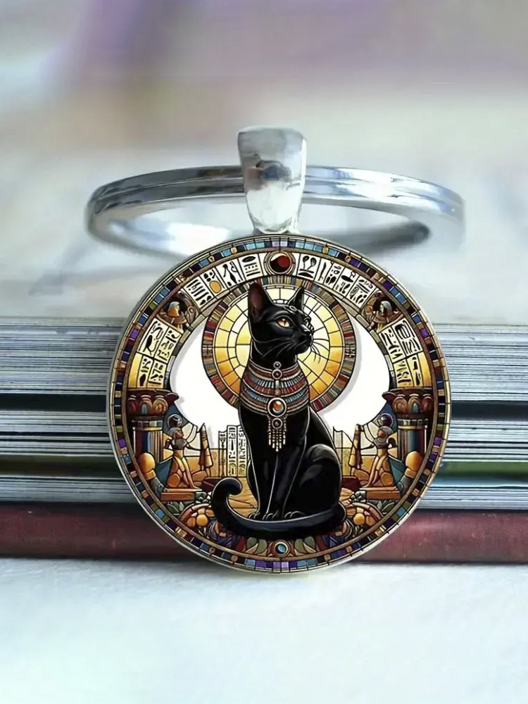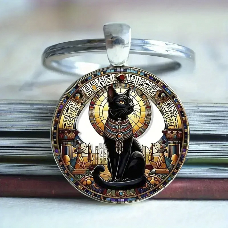 Ancient Egyptian Black Cat Time Gemstone Keychain