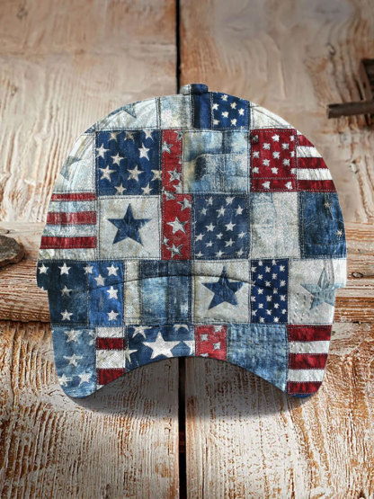 Independence Day Denim Patchwork Print Canvas Hat