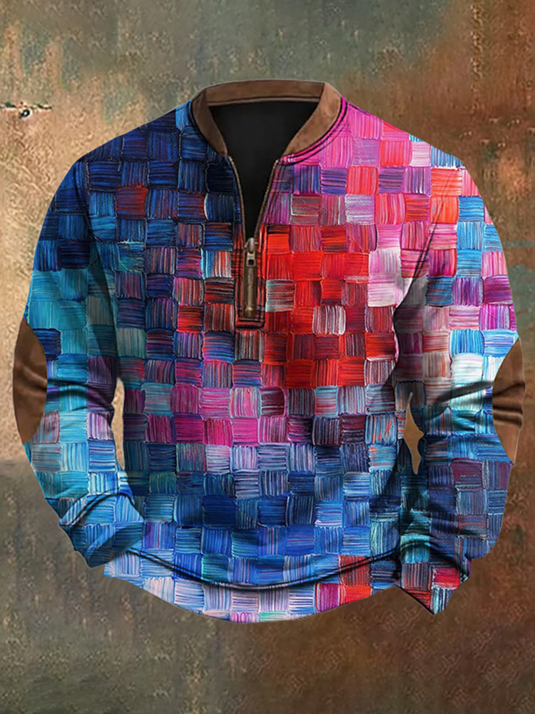 Men's Geometric Color Block Patchwork Printed Sweatshirt