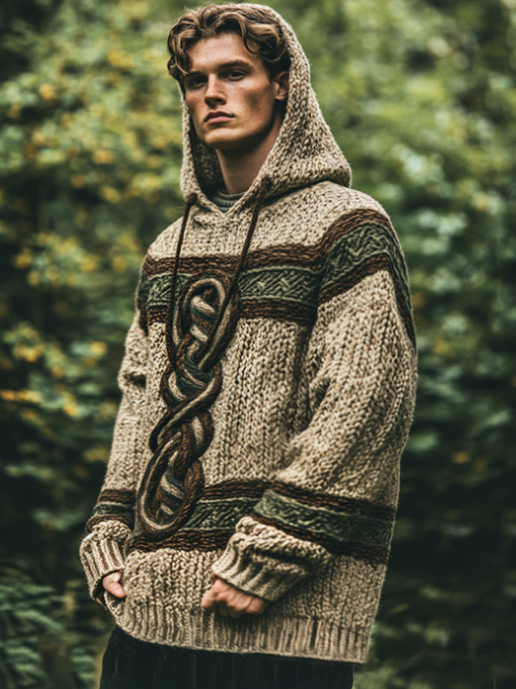 Men's Irish Celtic Knotted Chunky Knit Hooded Sweater