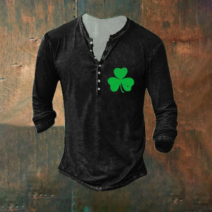 Men'S St Patrick'S Day Clover Print Button Casual T-Shirt