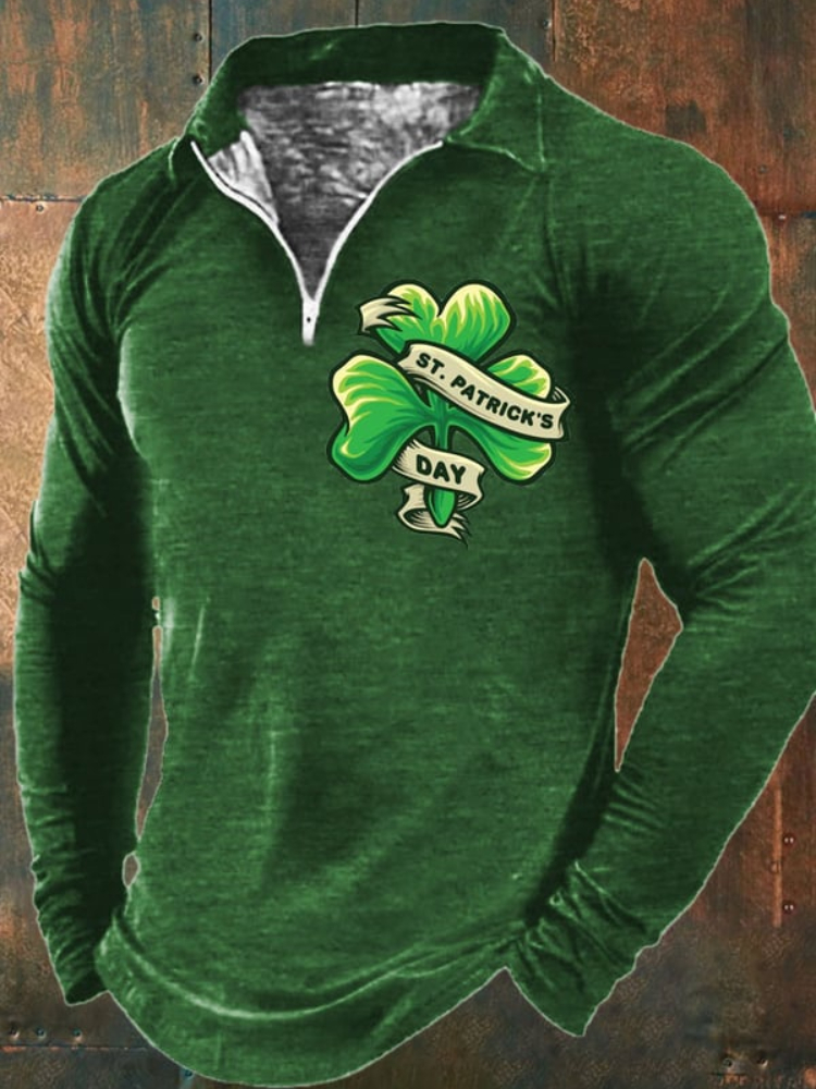 Men's St. Patrick's Day Print Zipper Polo Shirt