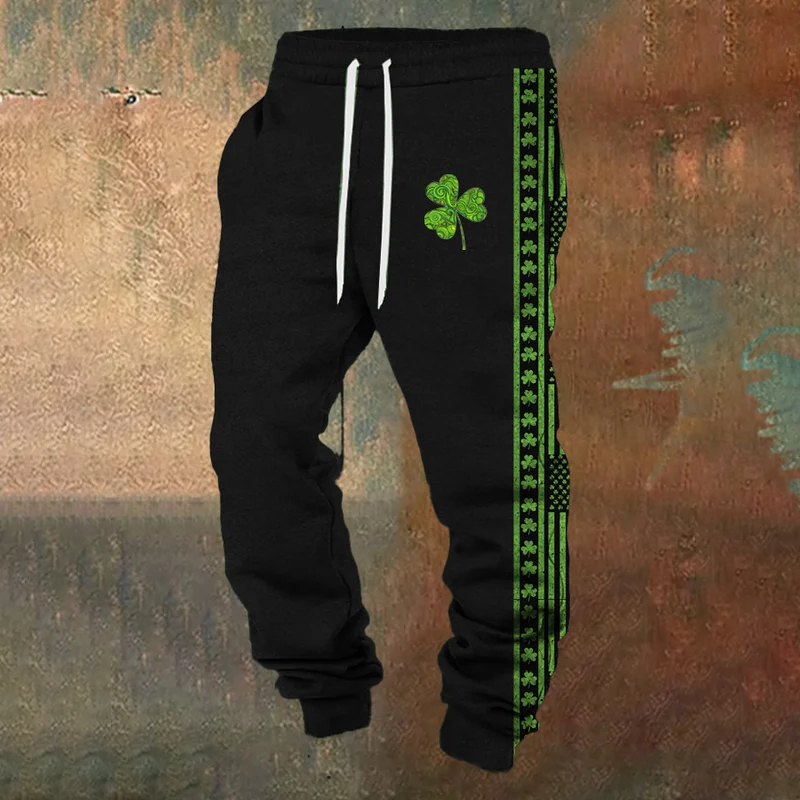 Men's St. Patrick's Day Printed Elastic Waist Tie-Up Trousers