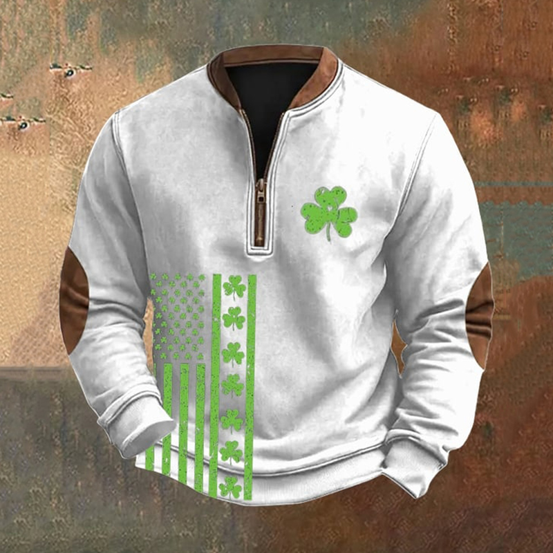 Men's St. Patrick's Day Shamrock Flag Print Zip Sweatshirt