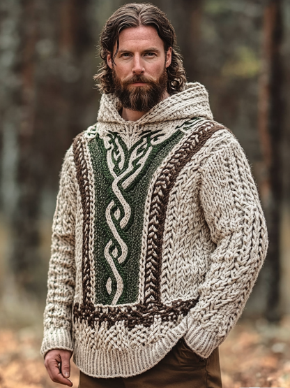 Men's Vintage Celtic Knot Jacquard Aran Hooded Sweater
