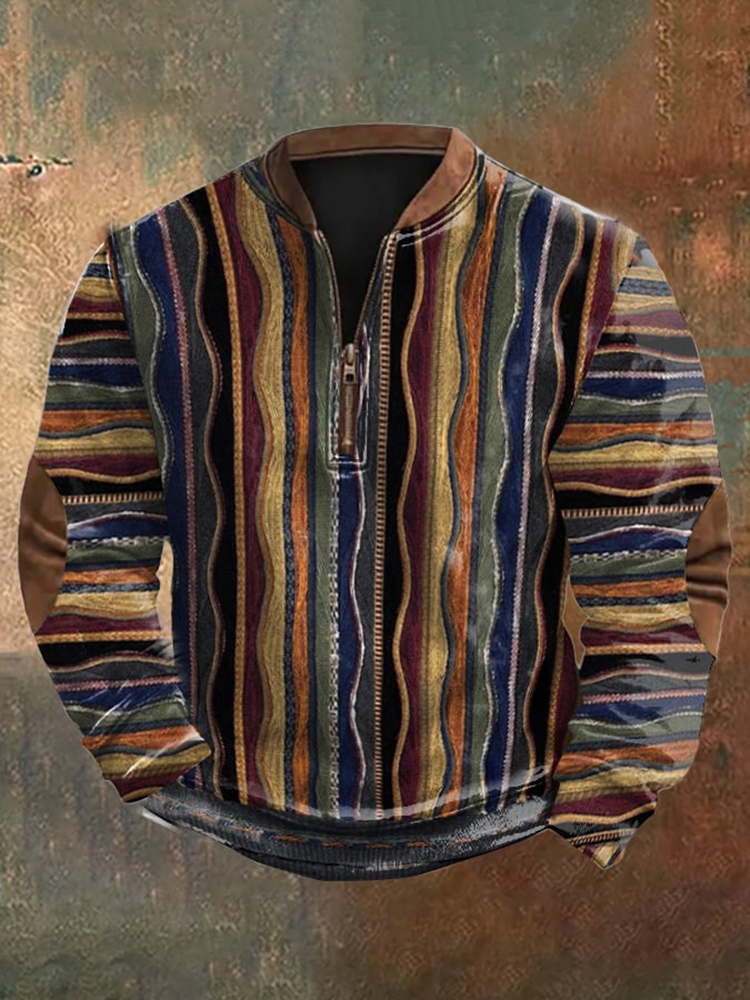 Men's Vintage Knit Print Zip Up Sweatshirt