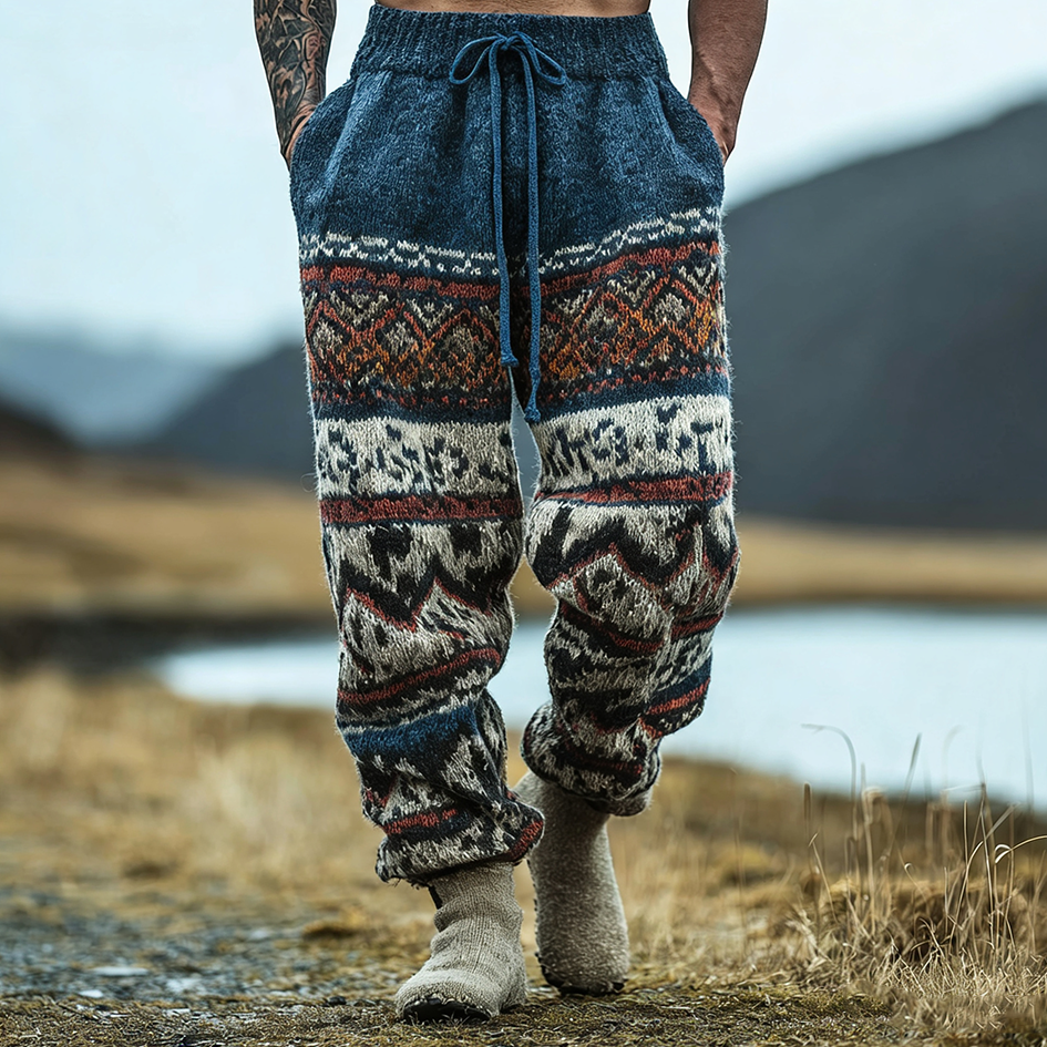 Retro British Style Men's Winter Warm Knitted Casual Long Pants