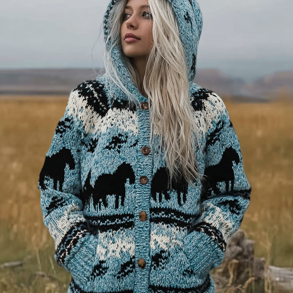 Retro Tribe Iceland Pattern Winter Warm Knitted Sweater Coat