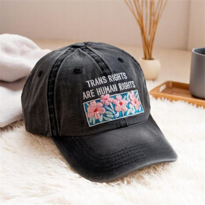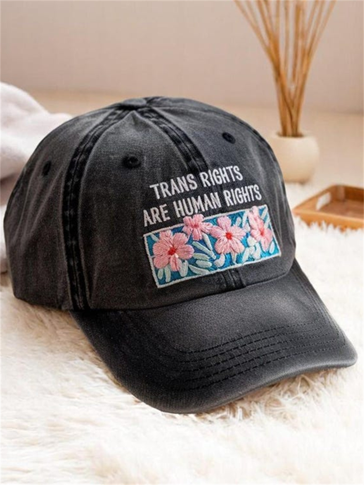 Trans Rights Are Human Rights Floral Embroidered Washed Cap
