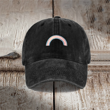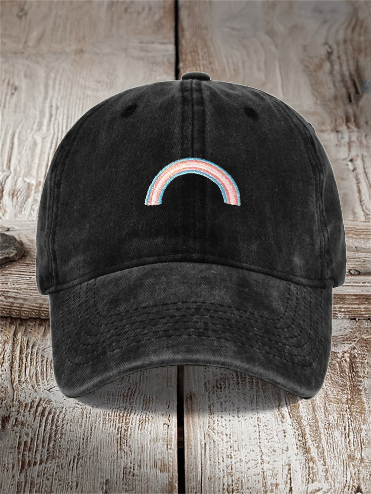 Transgender Inspired Rainbow Embroidered Washed Cap