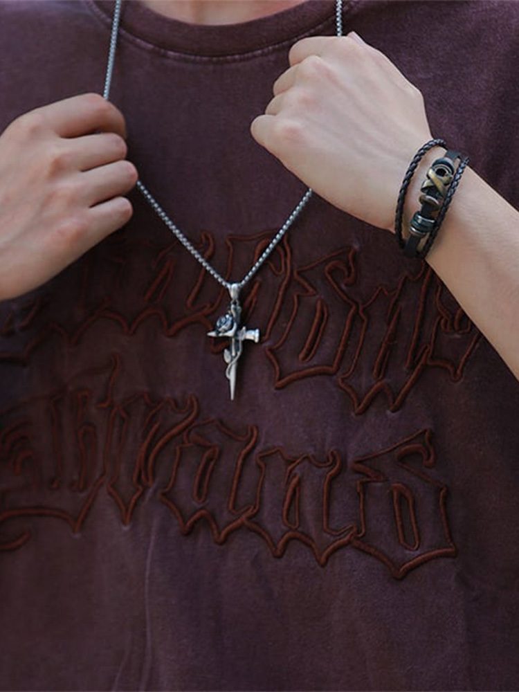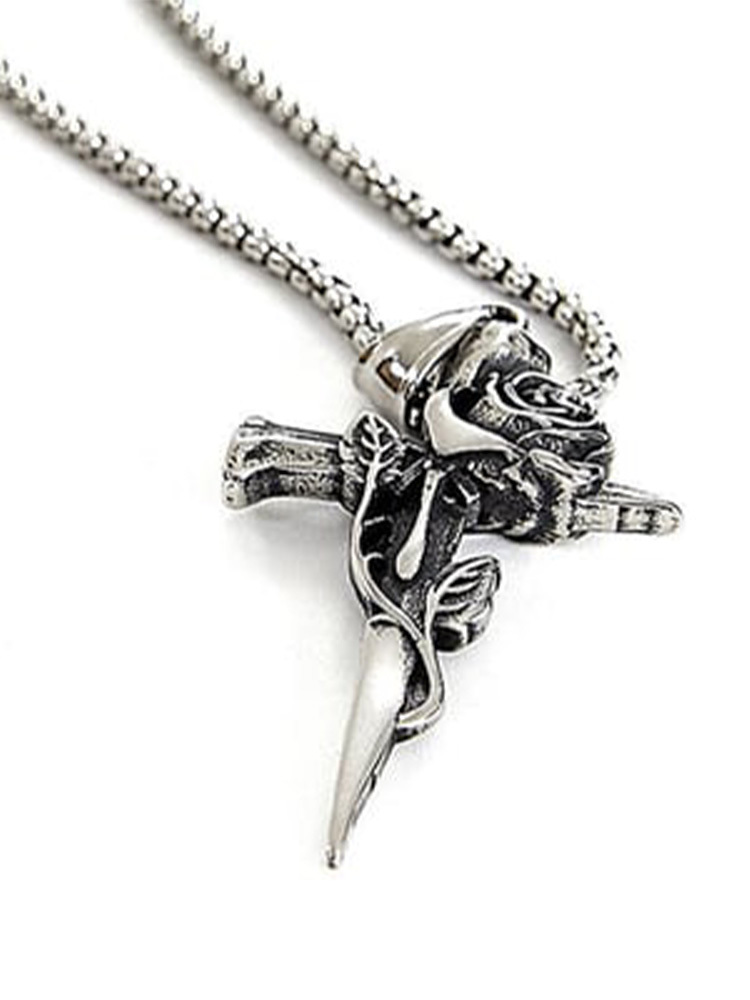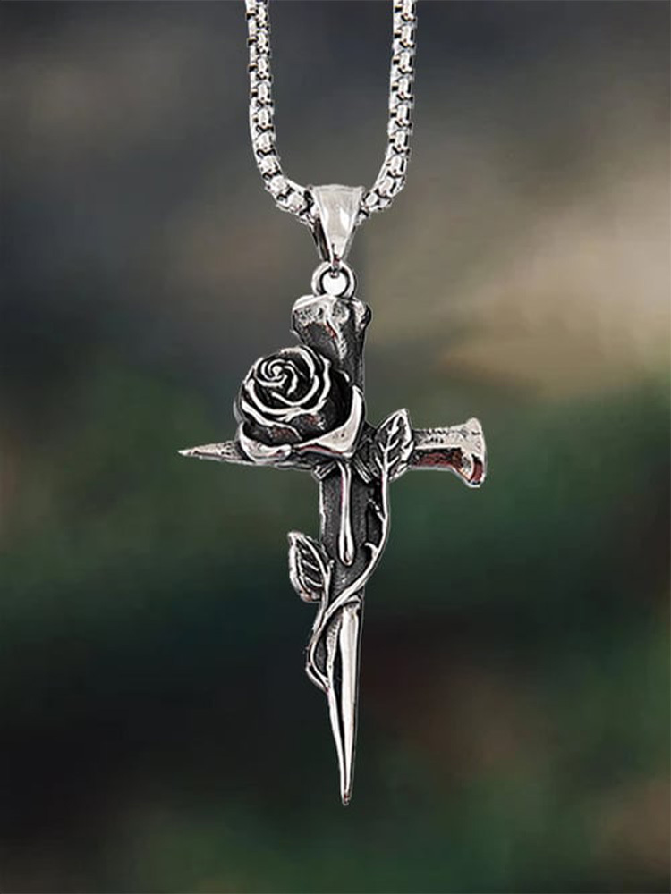 Unisex Rose Cross Faith Necklace