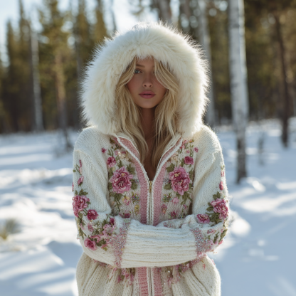 Women's Bohemian Retro Style Hooded Knit Sweater Jacket