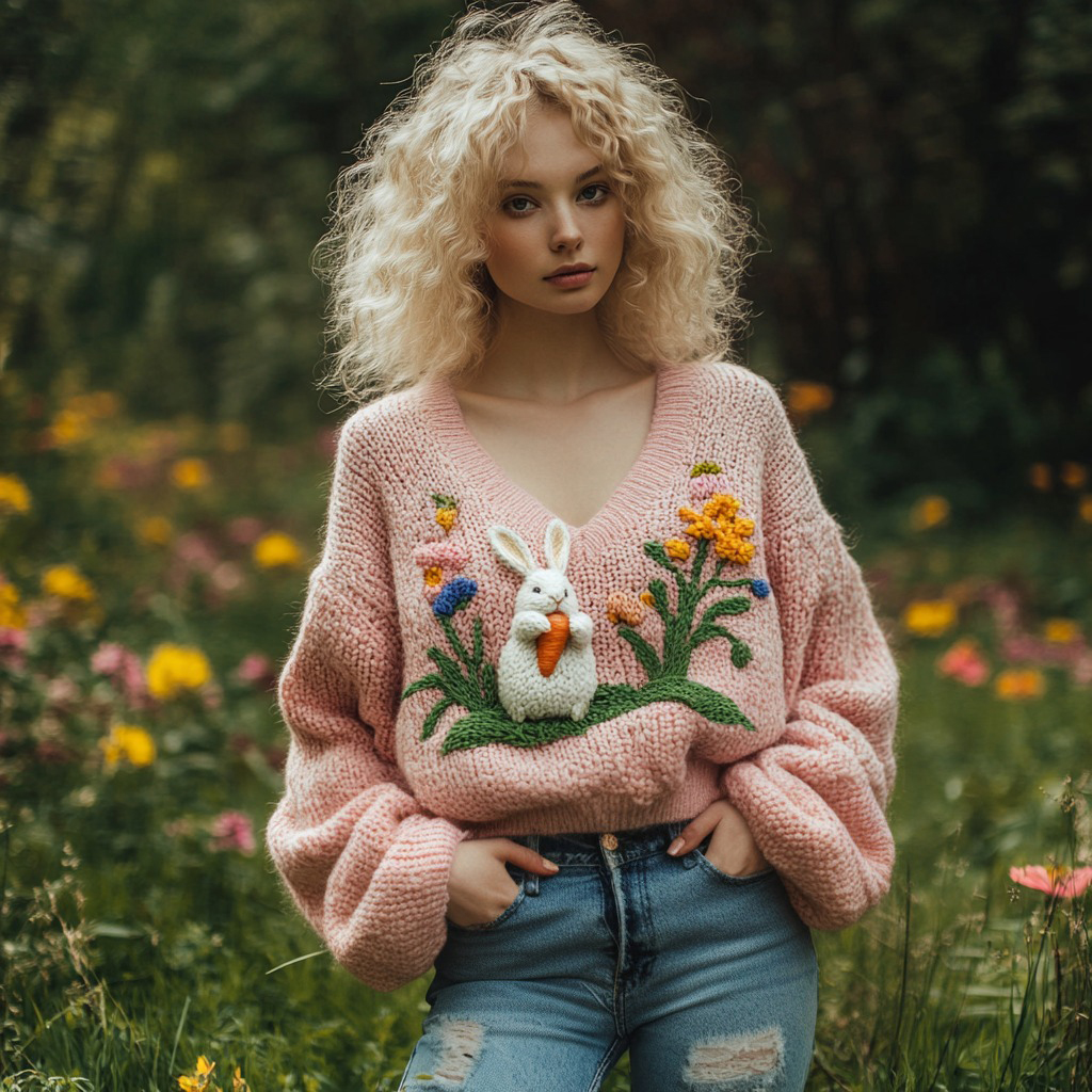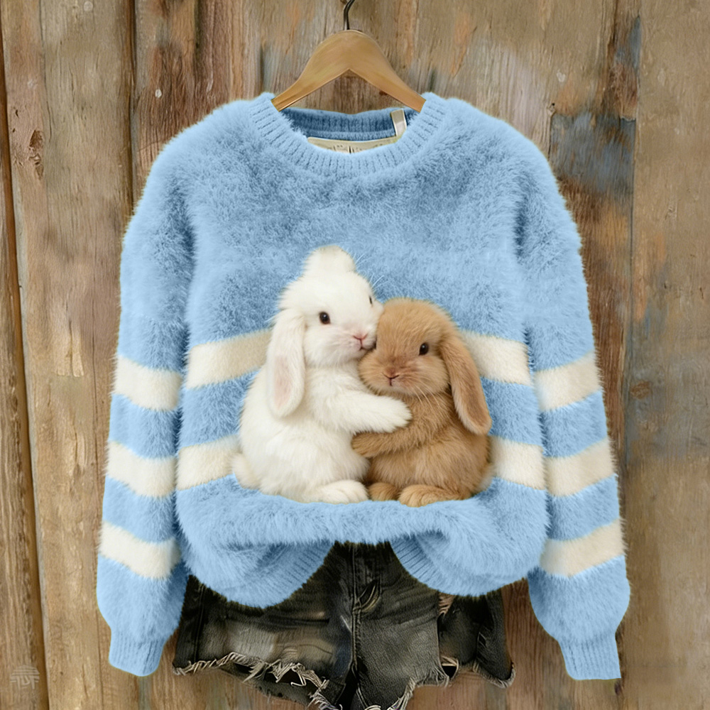 Lovely Bunny & Snow Embroidered Cozy Plush Sweatshirt