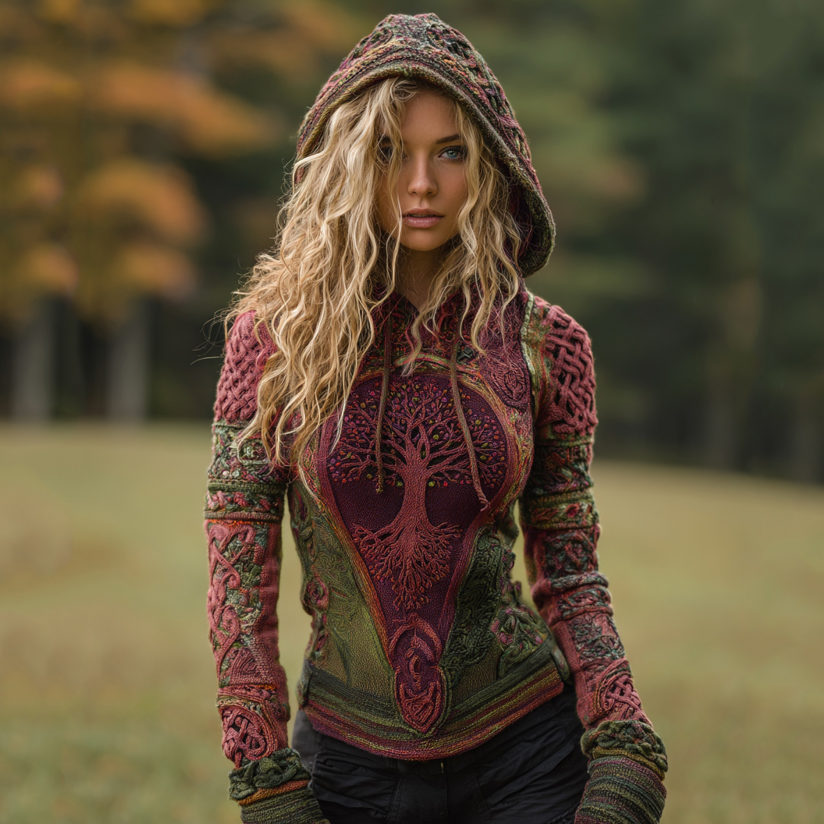 Women's Vintage Viking Tree Of Life Cozy Warm Zip Hoodie Cardigan