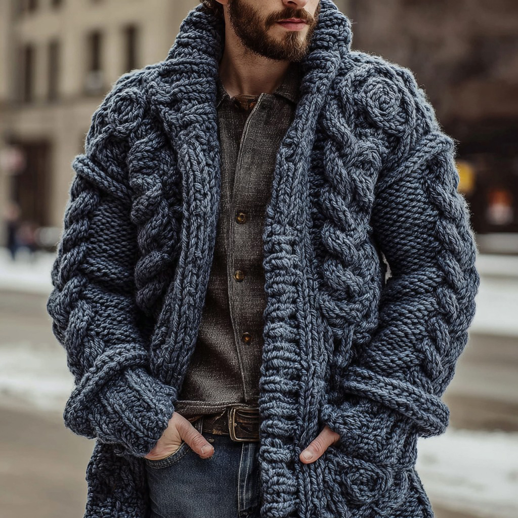 Men's Vintage Fair Isle Knit Warm Long Cardigan