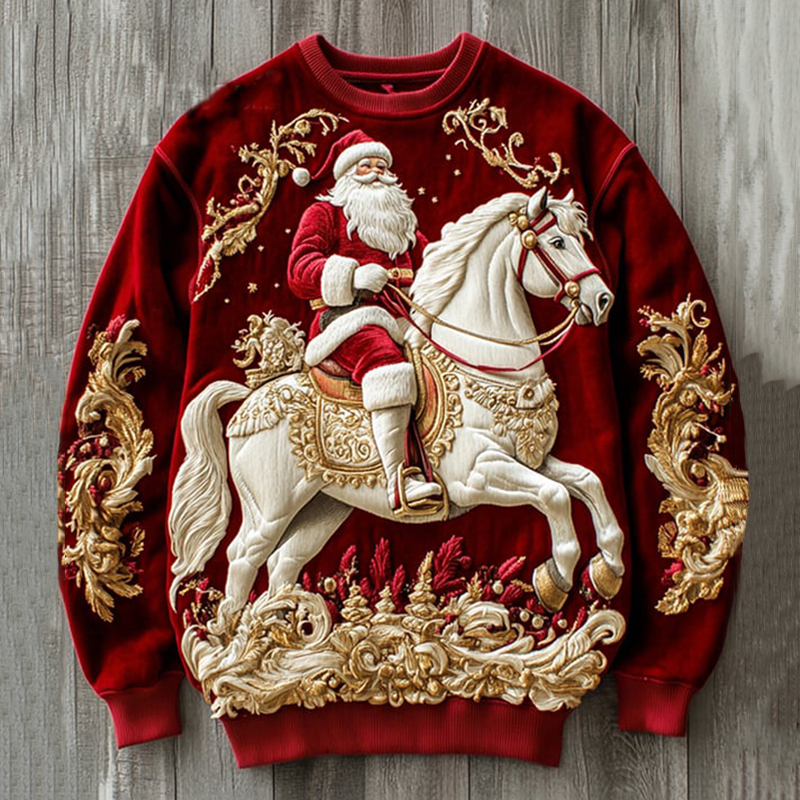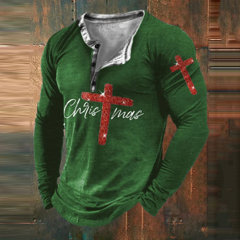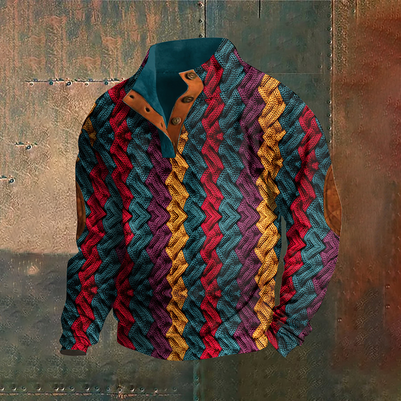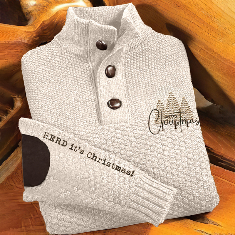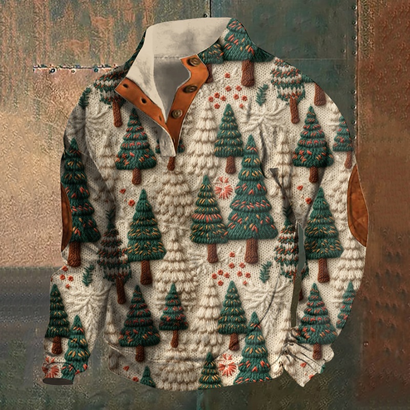 Men's Vintage Western Christmas Tree Embroidery Knit Jacquard Buttons Sweatshirt
