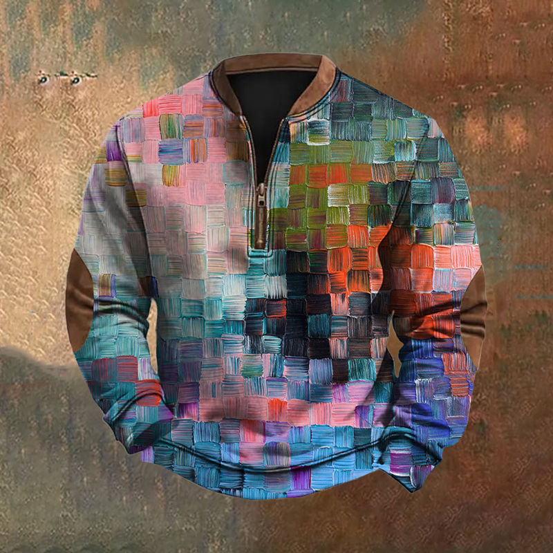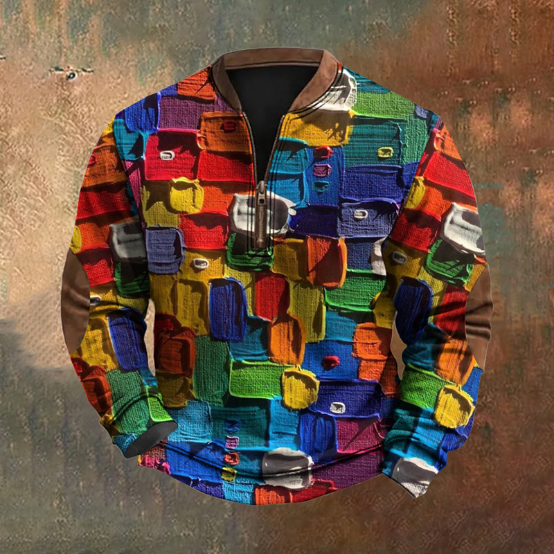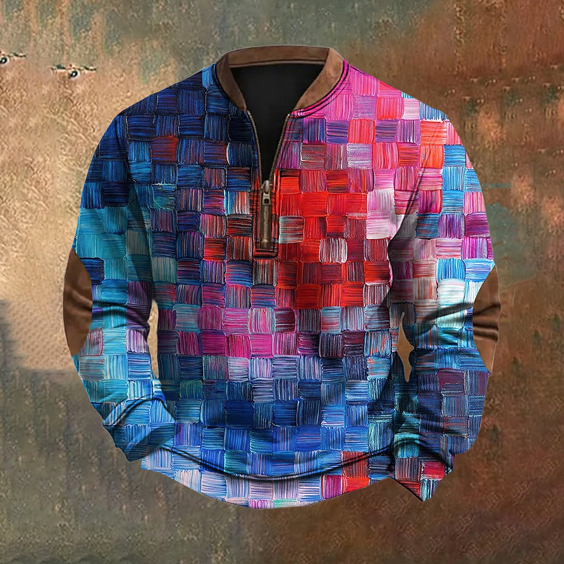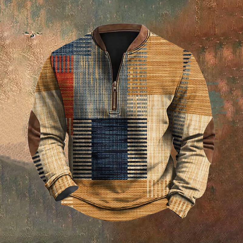 Men's Vintage Geometric Color Block Patchwork Printed Sweatshirt