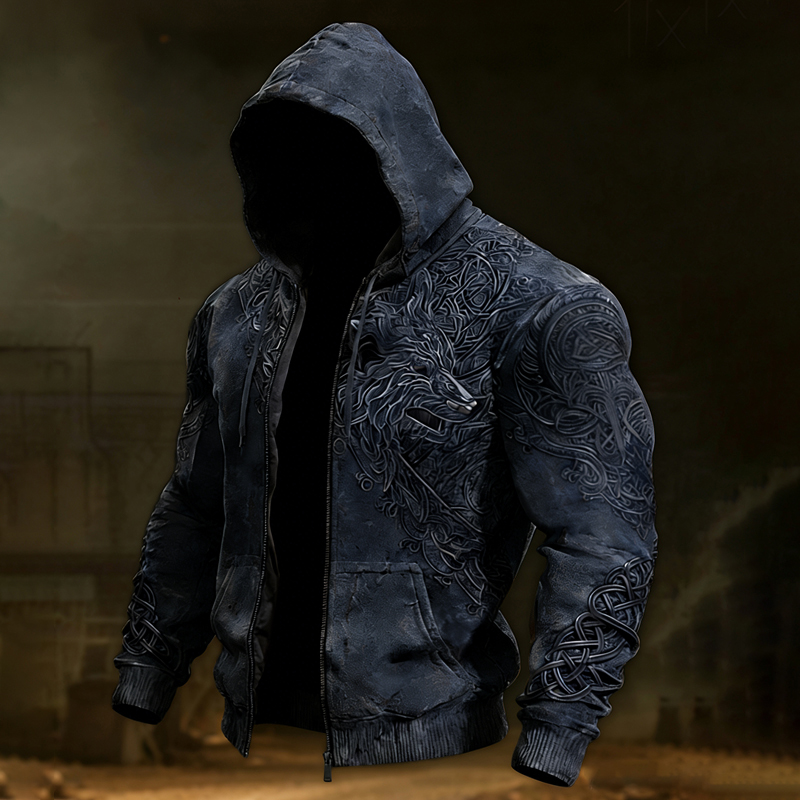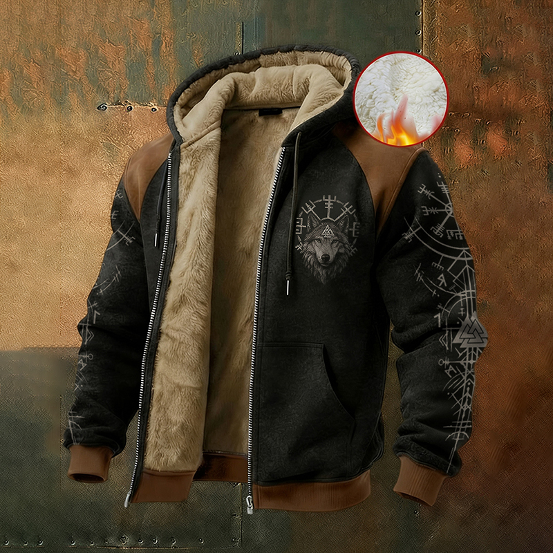 Men's Viking Wing Art Color-blocked Thick Fleece Warm Zip-up Jackets
