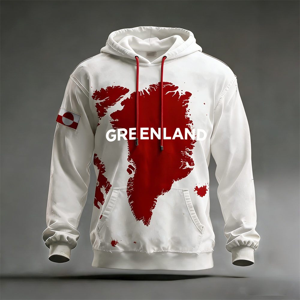 Greenland Map Print Vintage Men's Hooded Sweatshirt
