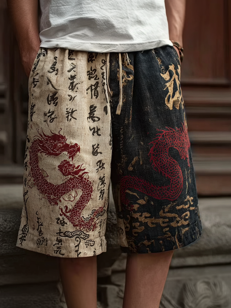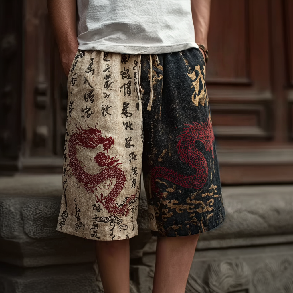 Japanese Art Retro Dragon Pattern Casual Shorts