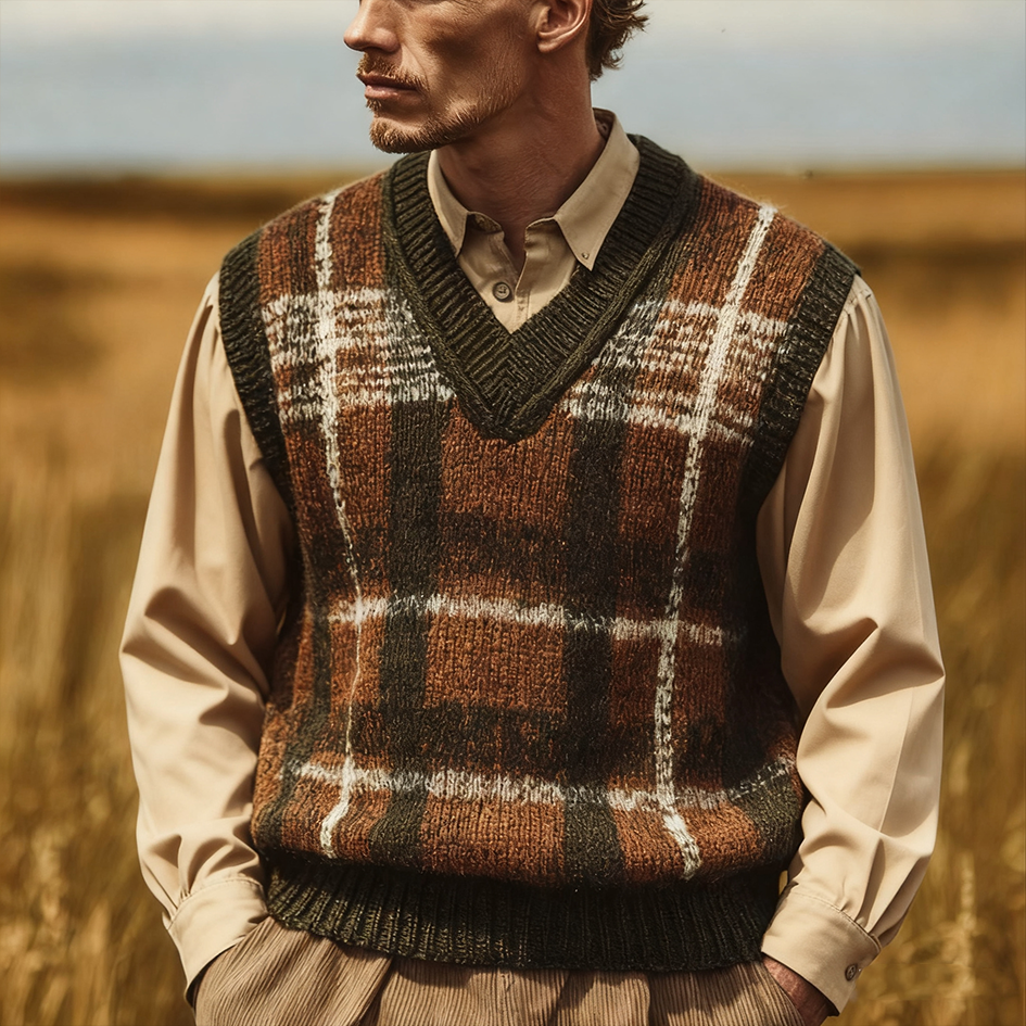 Men's Retro British High Neck Casual Knitted Sweater Vest
