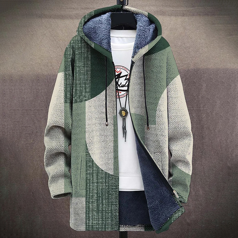 Men's Retro Geometric Plush Cozy Cardigan Sweater Jacket