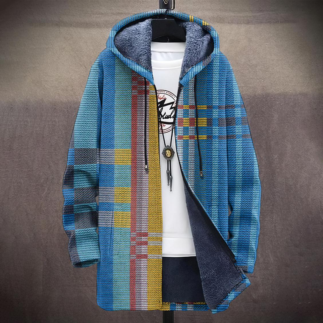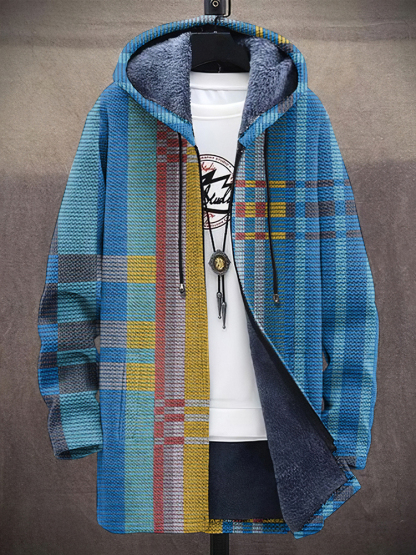 Men's Vintage Abstract Geometric Art Comfort Plush Hooded Coat