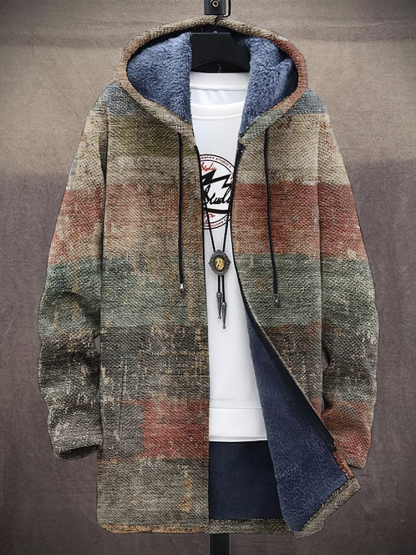 Men's Vintage Geometric Art Comfort Plush Hooded Coat