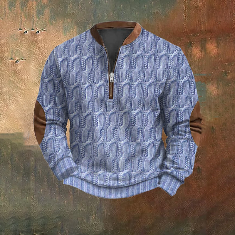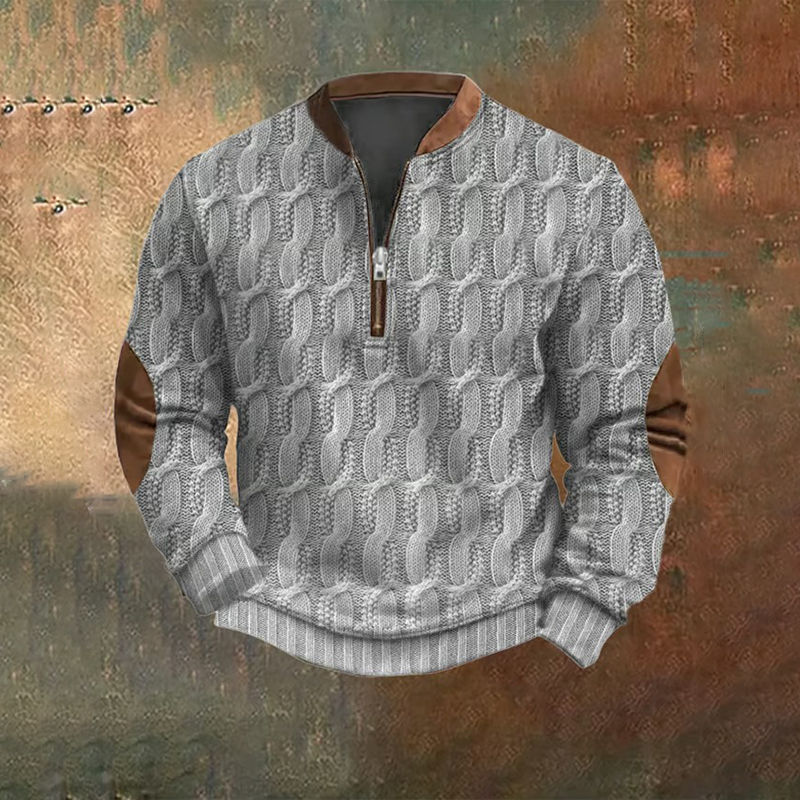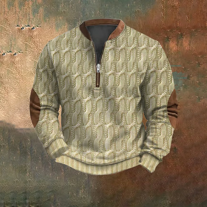 Men's Vintage Knit Print Zip-Up Sweatshirt