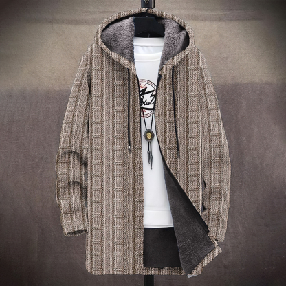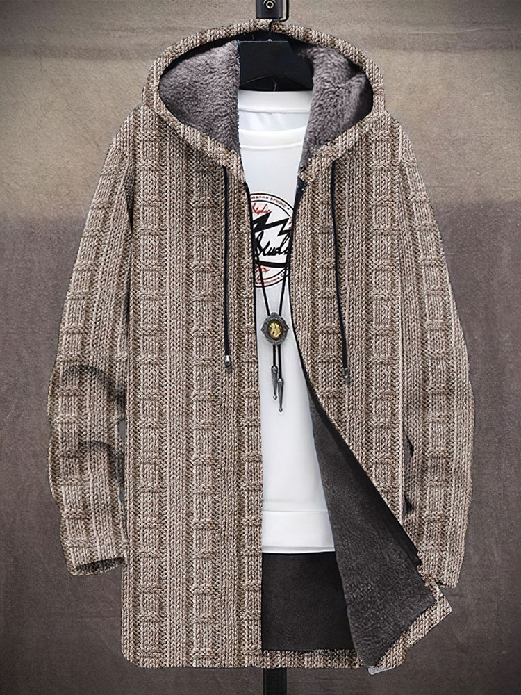 Men's Vintage Knitted Graphic Artcozy Plush Hooded Coat
