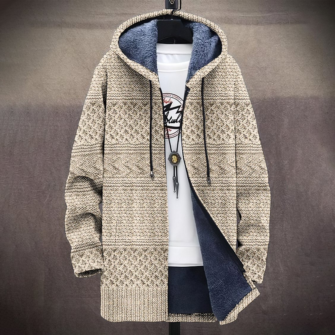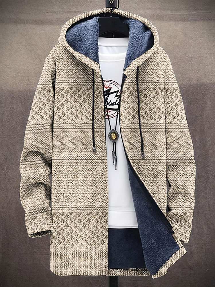 Men's Vintage Knitted Graphic Cozy Plush Hooded Coat