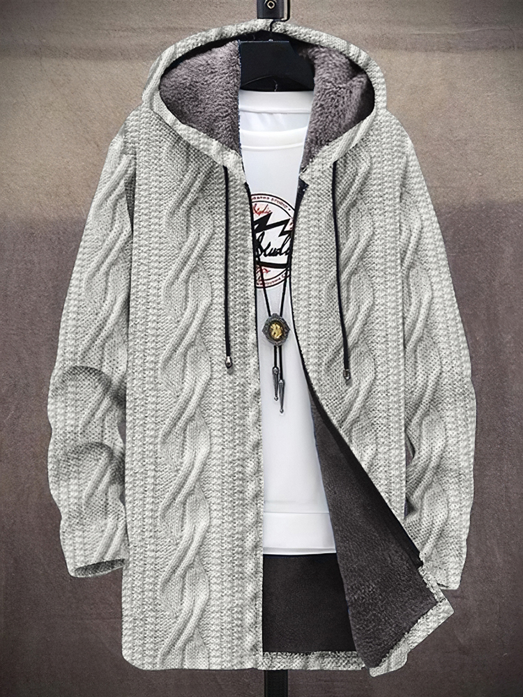 Men's Vintage Knitted Pattern Cozy Plush Hooded Coat