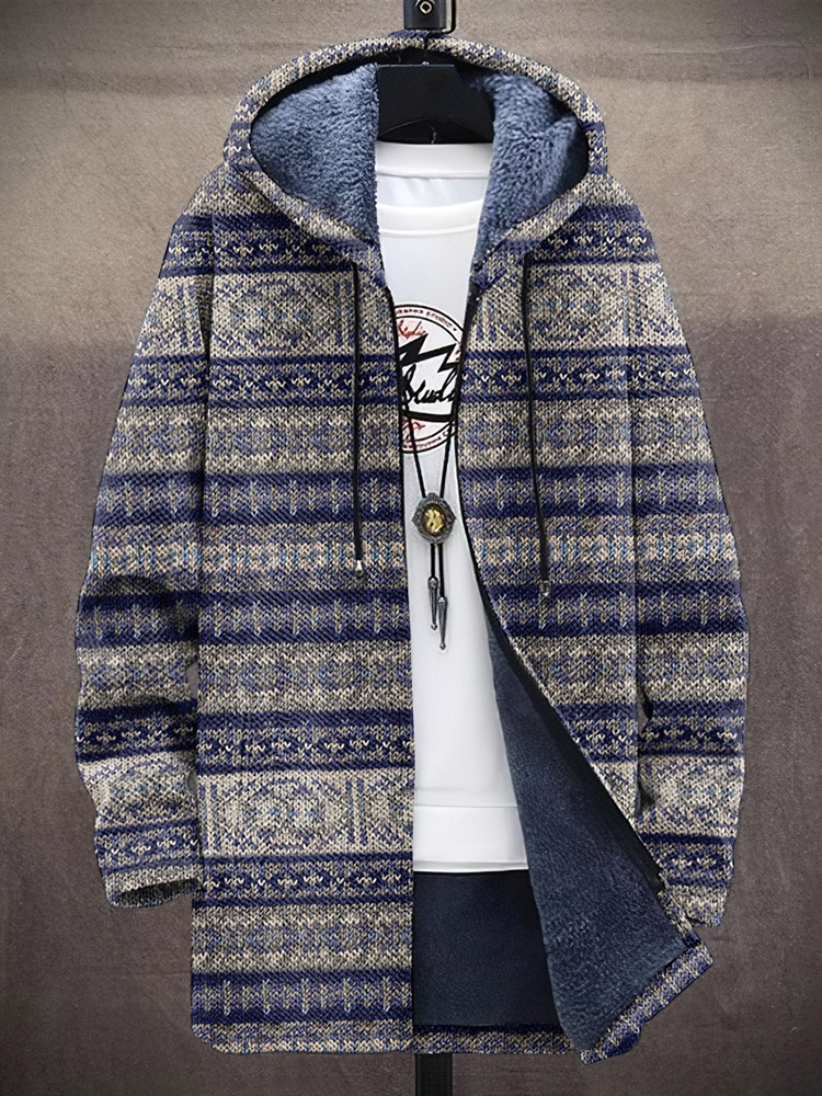 Men's Vintage Tribal Iceland Knitted Art Cozy Plush Hooded Coat